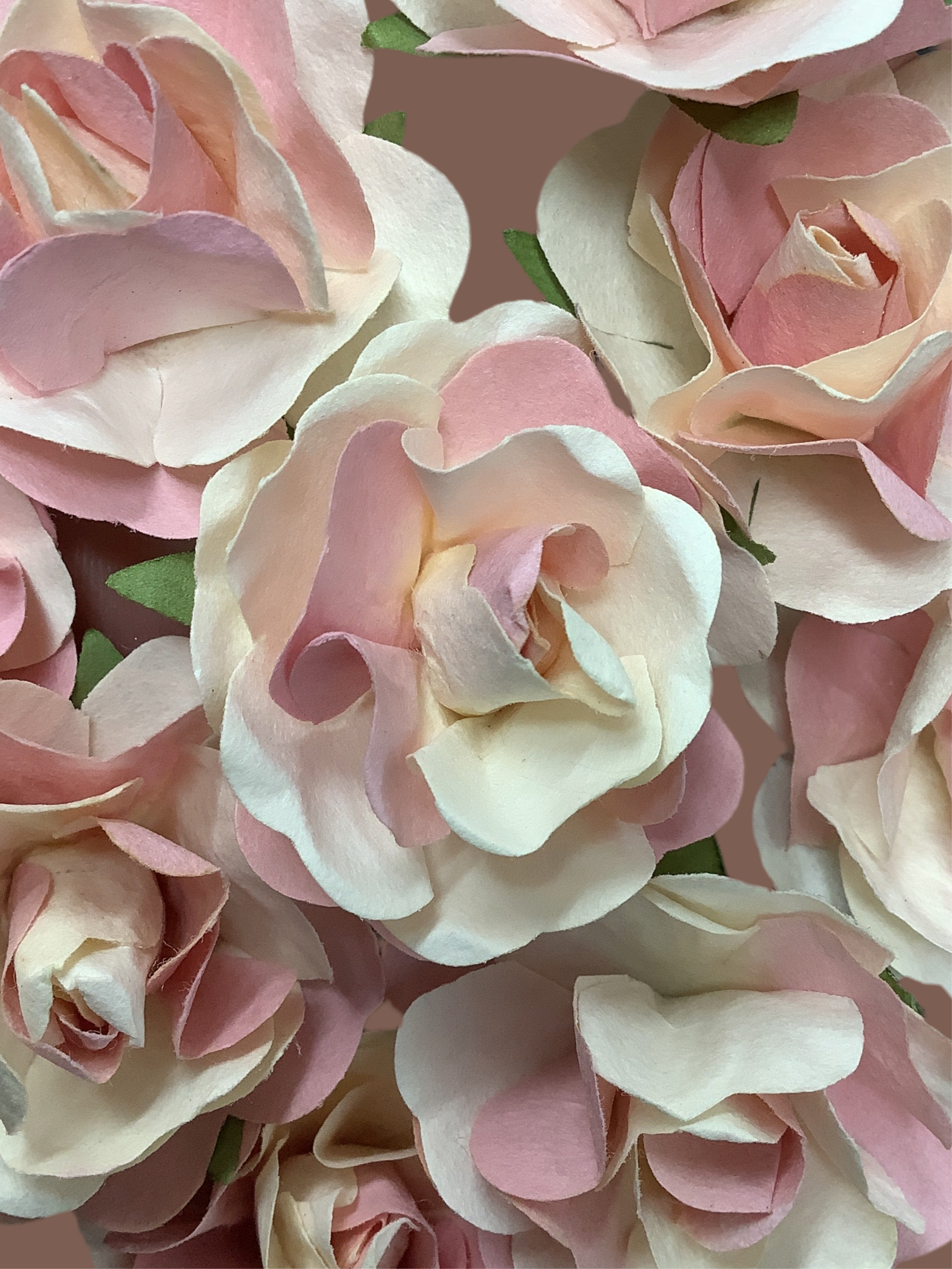 Conjunto de 9 flores de papel en tonos rosa y blanco, cada una con un tamaño de 1 pulgada. Estas flores delicadas y elegantes son perfectas para añadir un toque refinado a tus proyectos de decoración, manualidades o eventos especiales. Su diseño sutil y sofisticado aporta frescura y estilo sin esfuerzo.