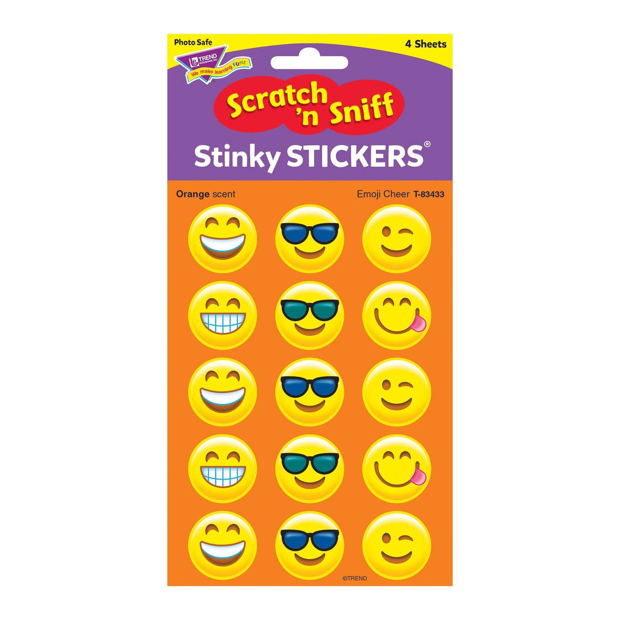 Emoji Cheer, Orange scent Scratch 'n Sniff Stinky Stickers – Large Round