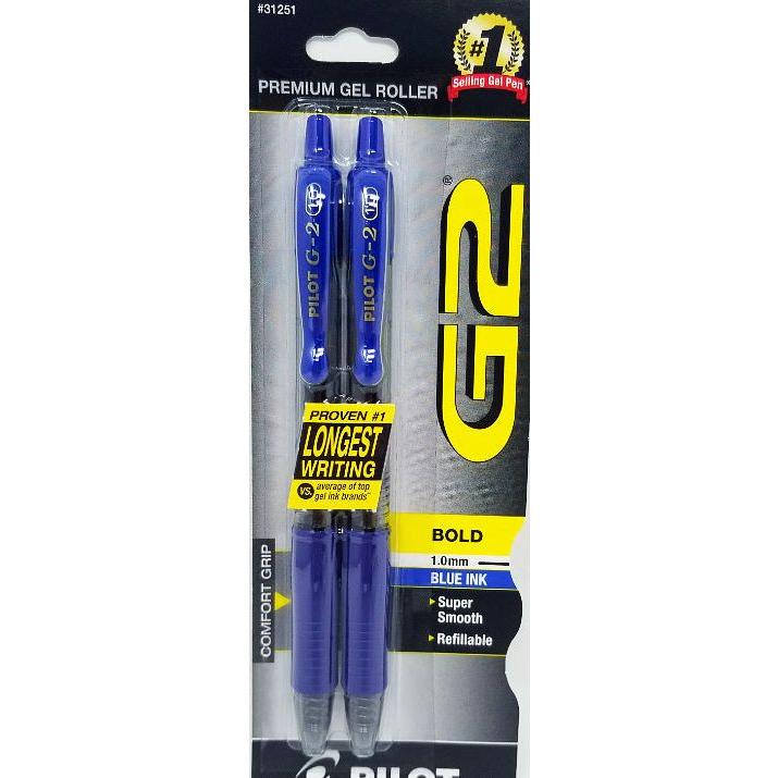 G2 is the ultimate pen for the everyday overachiever. Pilot G2 is America's #1 Selling Go-2 gel ink pen (NPD, 2017) G2 writes smoothly, as a comfortable rubber grip, and has been proven to write longer vs. the average of branded competitors. Make G2 your Go-2 pen! **