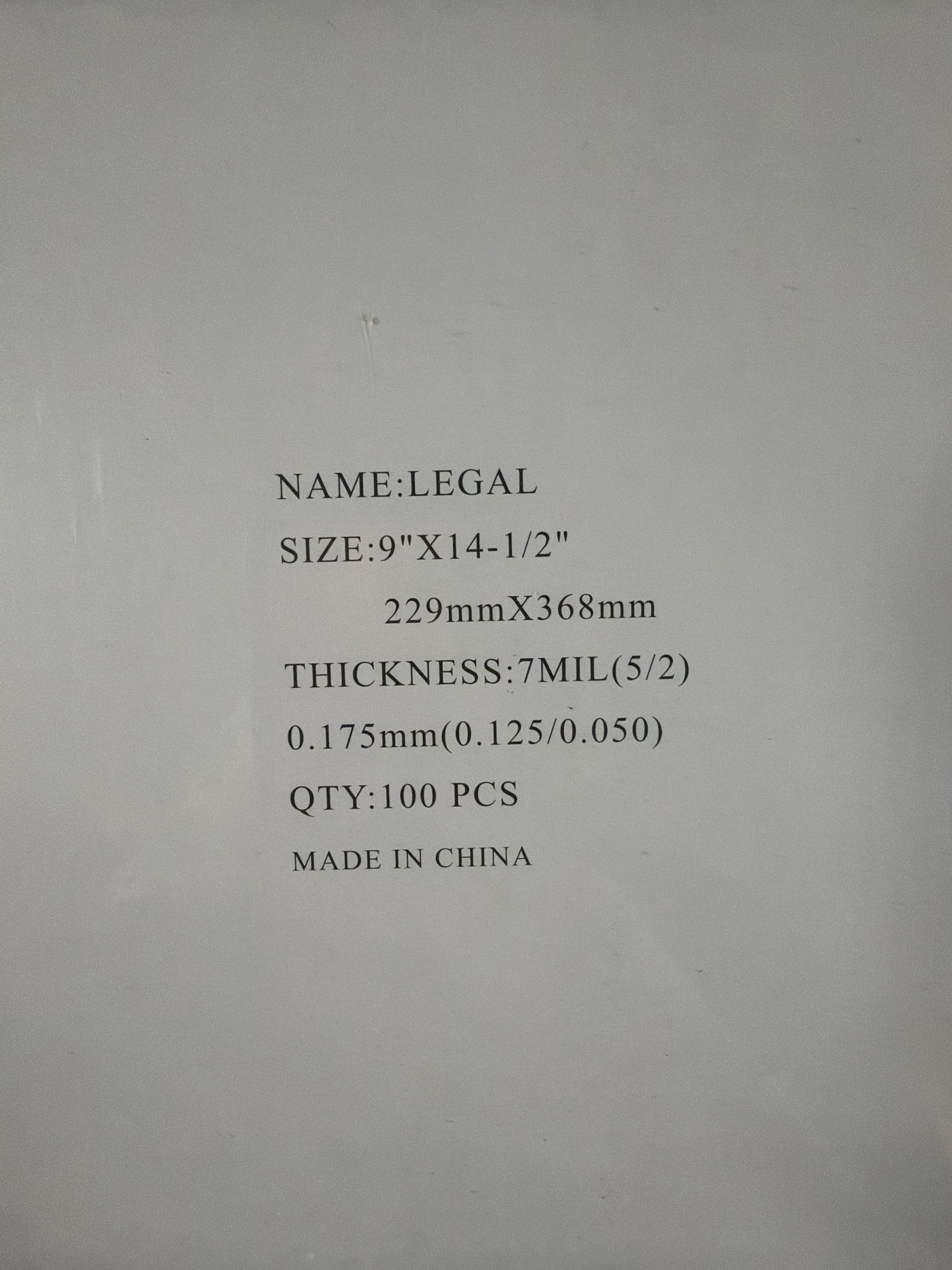 LAMINATING POUCH 7ML LEGAL