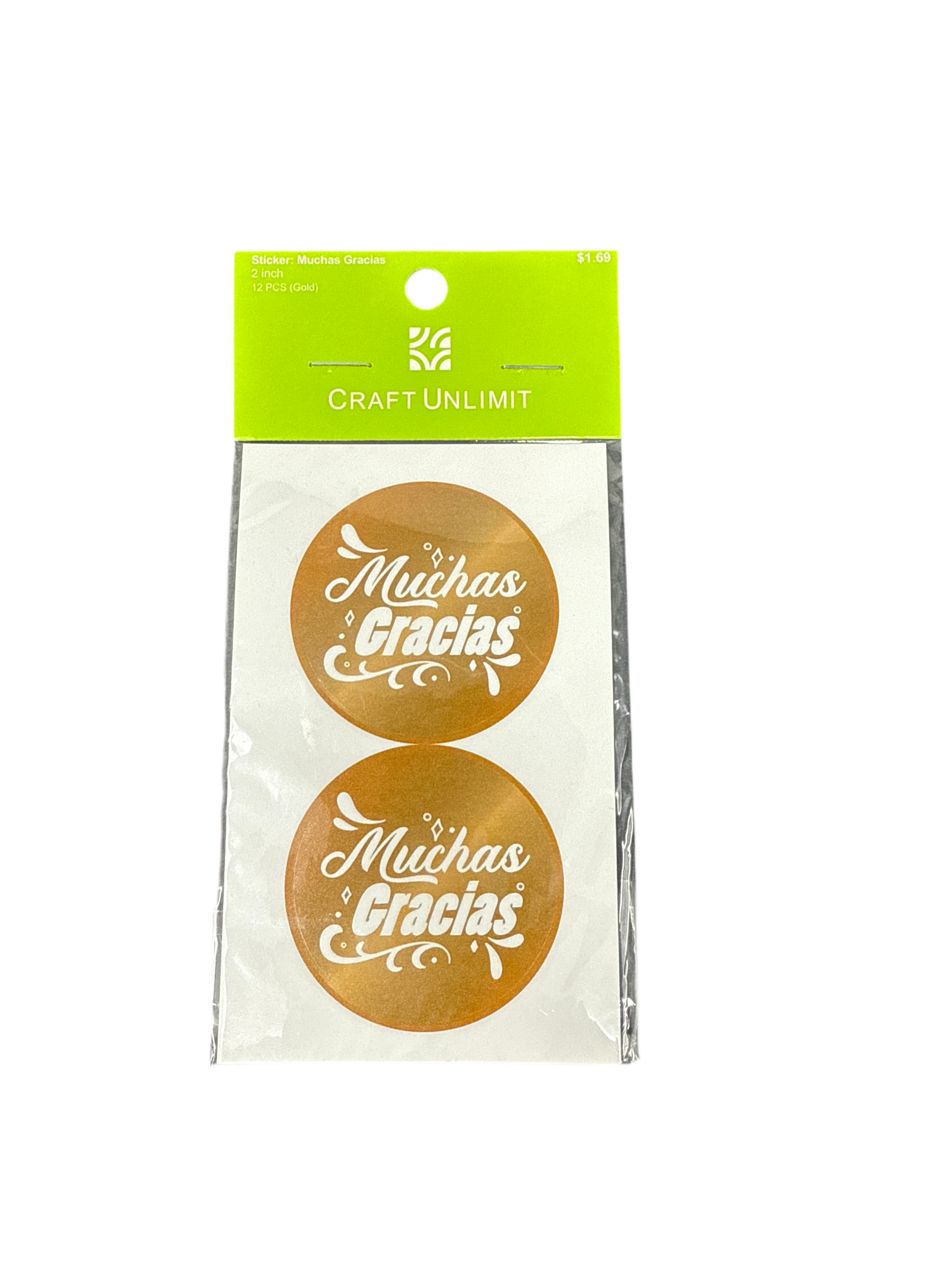 ROUND STICKER (MUCHAS GRACIAS-GOLD) 2IN