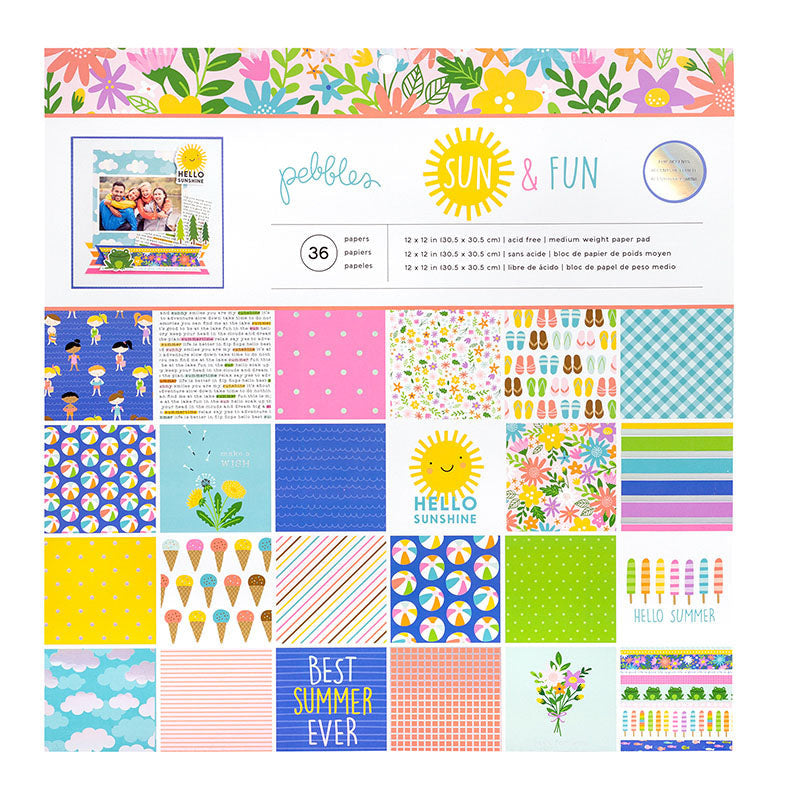* Quench your thirst with your summer crafts when you use the Sun and Fun Collection 12" x 12" Paper Pad with Holographic Foil Accents by Pebbles!